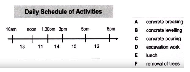 Choose FIVE answers from the list and write the correct letter A-F next to questions 11-15.
