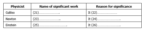 Complete the table below. Write NO MORE THAN TWO WORDS for each answer.