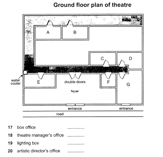 Label the plan below. Write the correct letter A-G, next to questions 17-20.