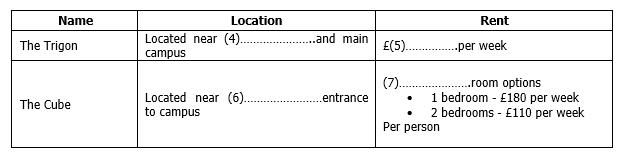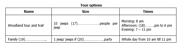 Complete the table below. Write NO MORE THAN THREE WORDS AND/ OR A NUMBER for each answer.