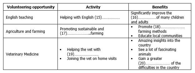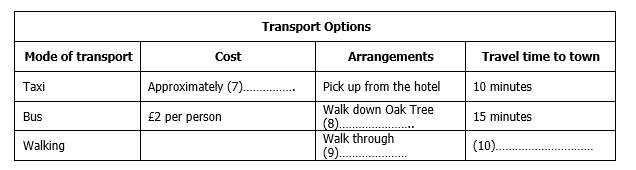 Complete the table below. Write NO MORE THAN TWO WORDS for each answer.