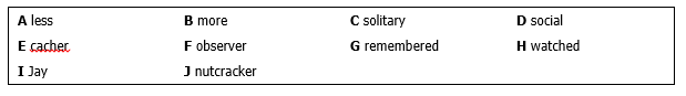 In the experiment, the cacher bird hid seeds in the ground while the other (24)……………………. As a result, the Nutcracker and the Mexican Jay showed different performance in the role of (25)…………………… at finding the seeds—the observing (26)…………………… didn’t do as well as its counterpart.
