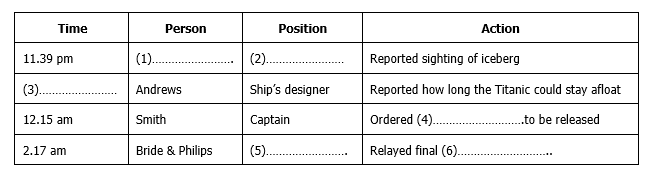 Complete the table below. Choose NO MORE THAN TWO WORDS from the text for each answer. Write your answers in boxes 1—6 on your answer sheet.