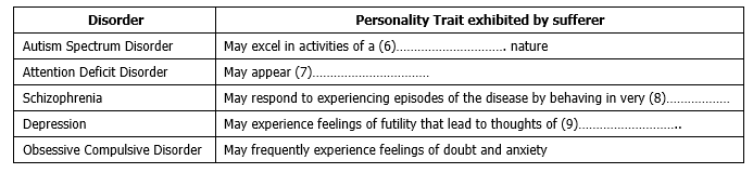 NB There are more disorders than descriptions, so you will not use them all.