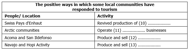 C Stories about the problems of tourism have become legion in the last few years. Yet it does not have to be a problem. Although tourism inevitably affects the region in which it takes place, the costs to these fragile environments and their local cultures can be minimized. Indeed, it can even be a vehicle for reinvigorating local cultures, as has happened with the Sherpas of Nepal’s Khumbu Valley and in some Alpine villages. And a growing number of adventure tourism operators are trying to ensure that their activities benefit the local population and environment over the long term.