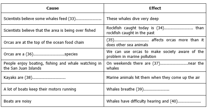 Complete the chart below. Write NO MORE THAN THREE WORDS.